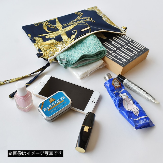 ヴィンテージスカーフをリメイクした定番のフラット形ポーチ。