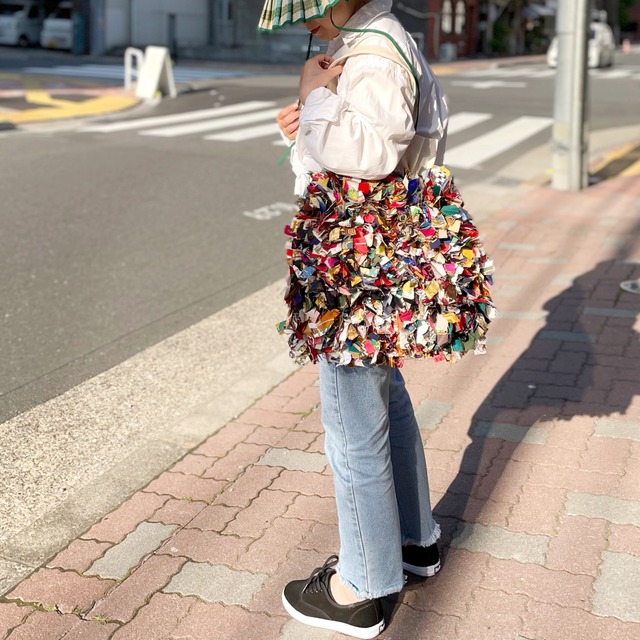 カットしたヴィンテージスカーフを使用したトートバッグ。