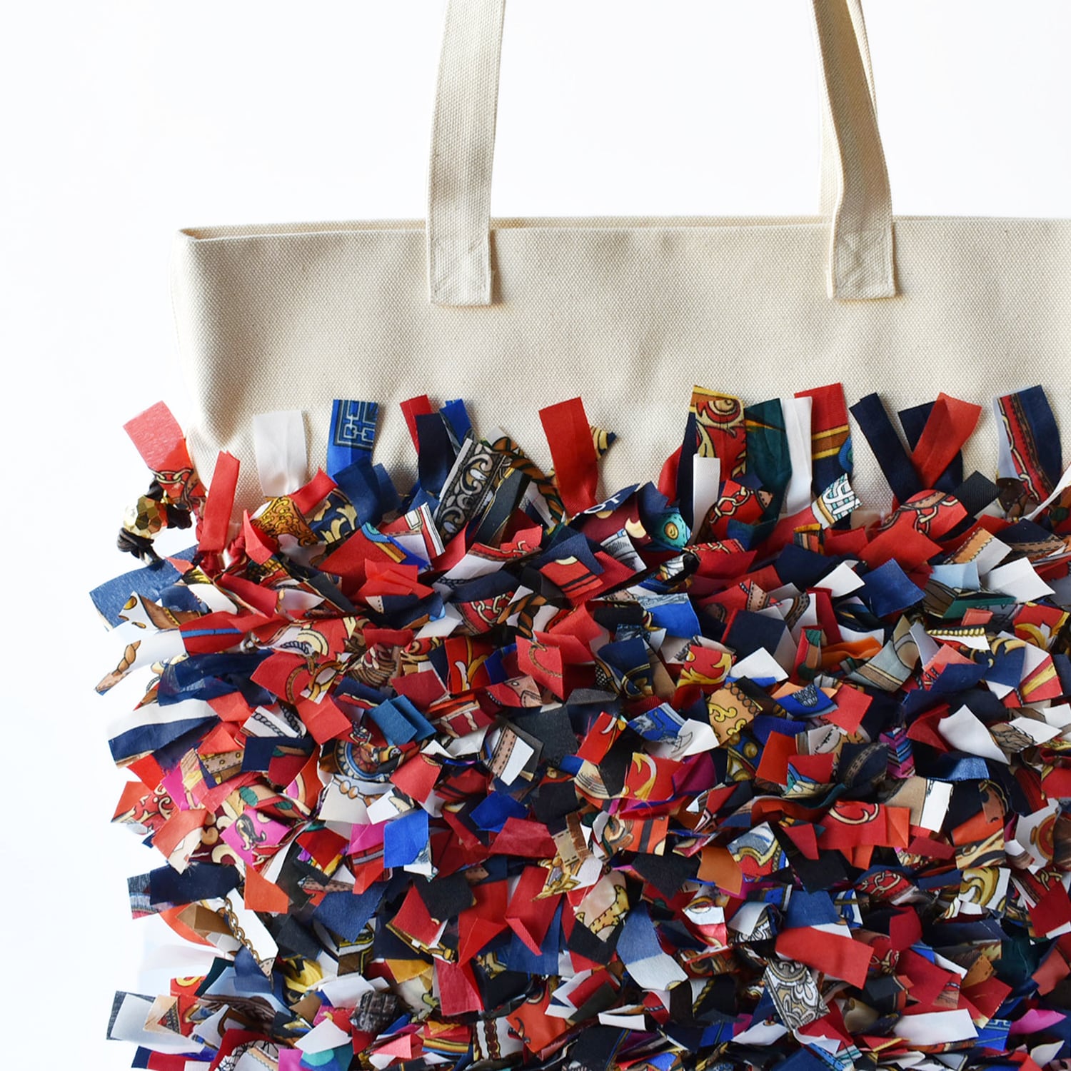 カットしたヴィンテージスカーフを使用したトートバッグ。