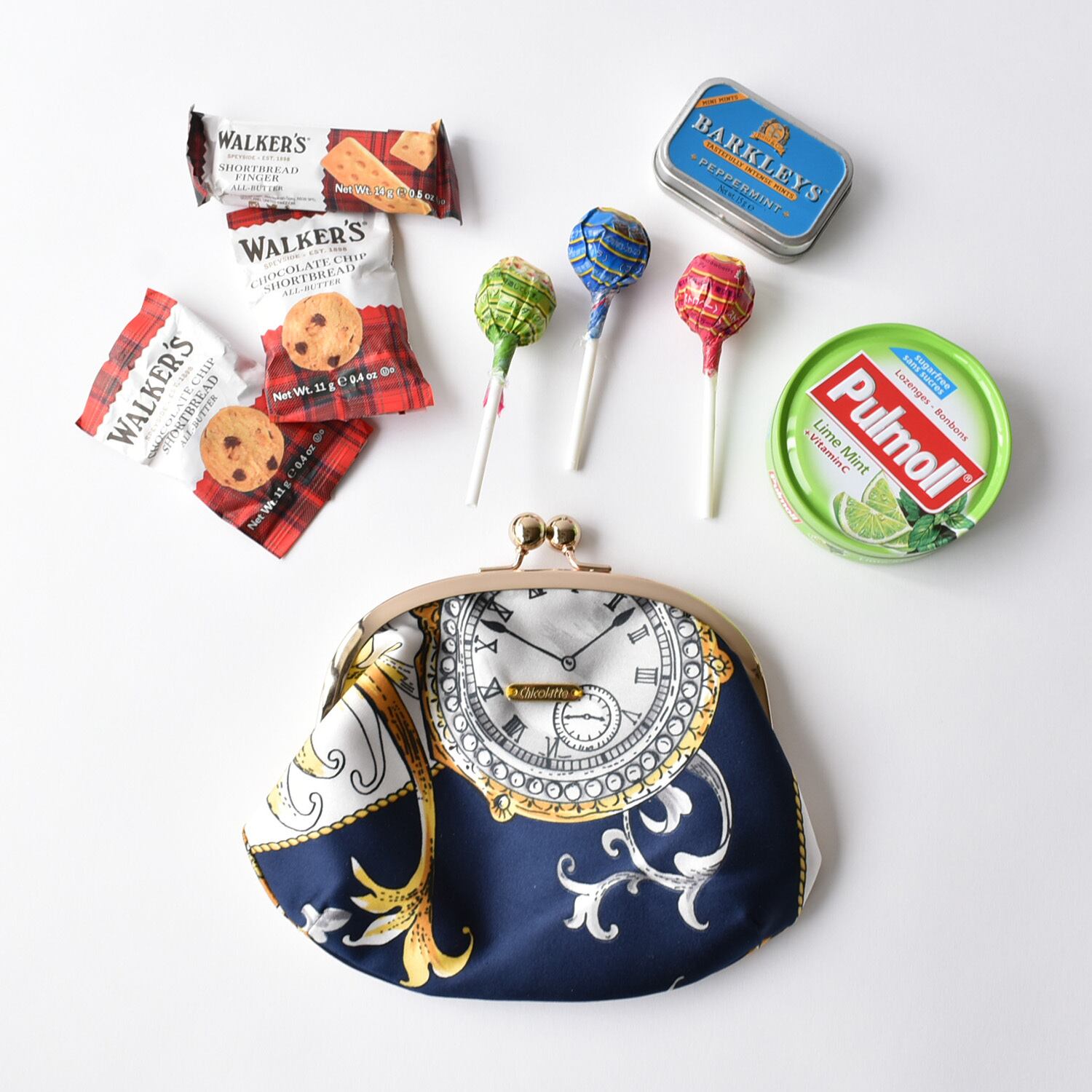 ヴィンテージスカーフをリメイクした、がま口ポーチ。