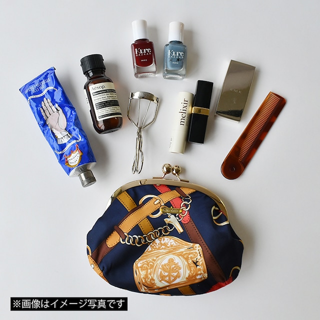 ミラーやビューラー、ハンドクリームなど、大きめのアイテムもしっかり入るがま口ポーチ。