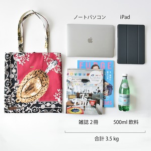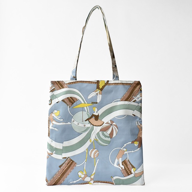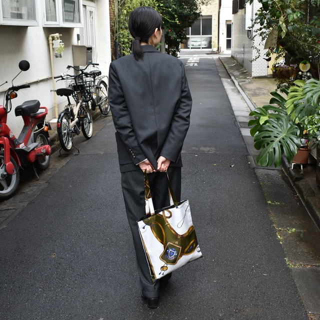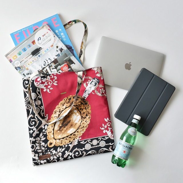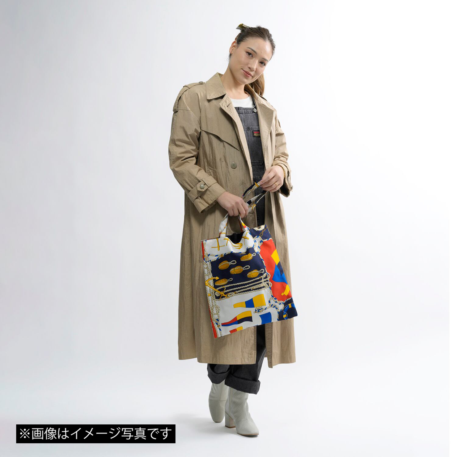 スカーフ裏に柔らかい芯地を合わせて折畳しやすいタイプのトートバッグとなります。