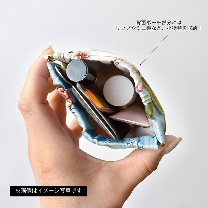リップやミニ鏡、ヘアコームなどメイク直しセットなどを入れていつも持ち歩きたい手のひらサイズのフラットなポーチ。