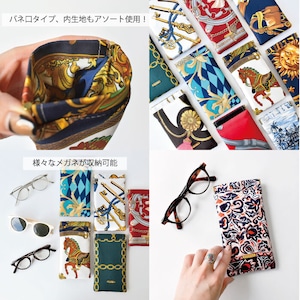 バネ口開閉で使いやすいグラスポーチ。スカーフの下地にクッションも効かせているのでふわふわとした触り心地が気持ちいい◎